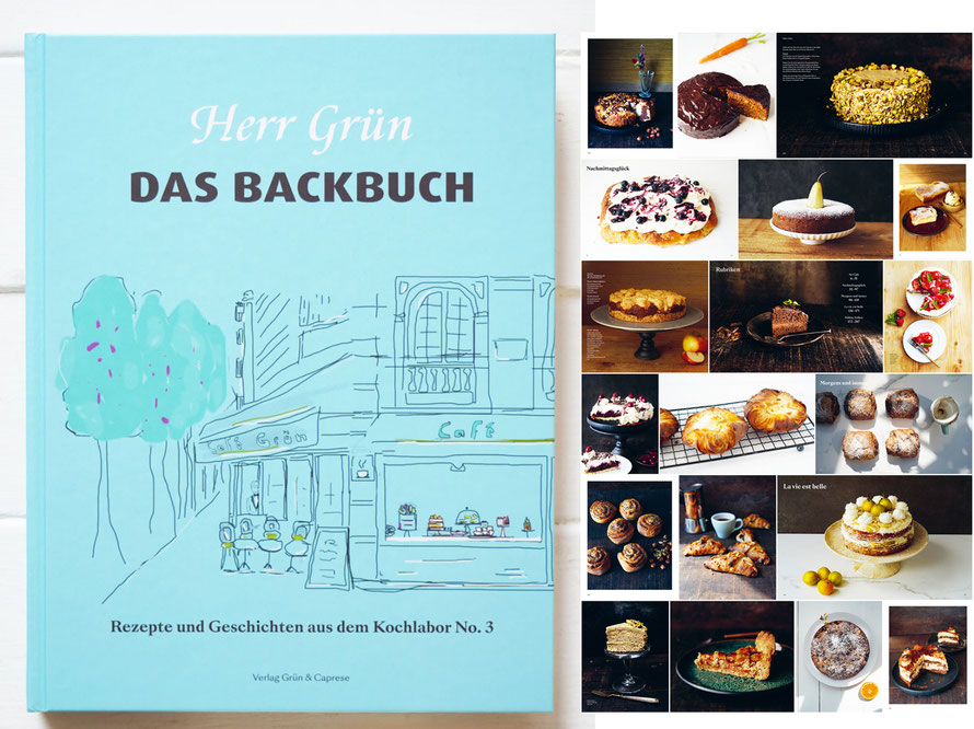 Heute, am 9. Oktober ist der Verkaufsstart meines dritten Buches - dieses Mal ist es ein Backbuch. In den Rubriken »Au Café«, »Nachmittagsglück«, »Morgens und immer«, »La vie est belle« und »Italien, Italien« stelle ich Rezepte mit dem typischen Herr-Grün-Twist vor. Torten, Rührkuchen, Tartes und Teilchen. Für jeden und alle Gelegenheiten ist etwas dabei. »Raffinato e delicato«, wie Professor Caprese meint. Alles einfach nachzubacken - mit detaillierten Anleitungen. Und natürlich wieder mit Geschichten um Professor Caprese und mich - Herrn Grün.